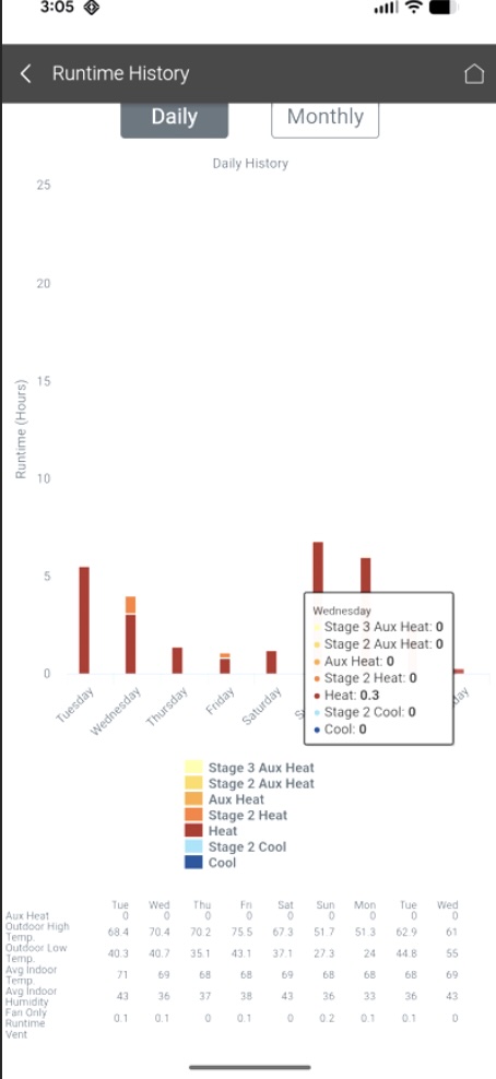 • Another evening their HVAC only ran 20 minutes after midnight while the outside temperatures overnight were in the 40’s.